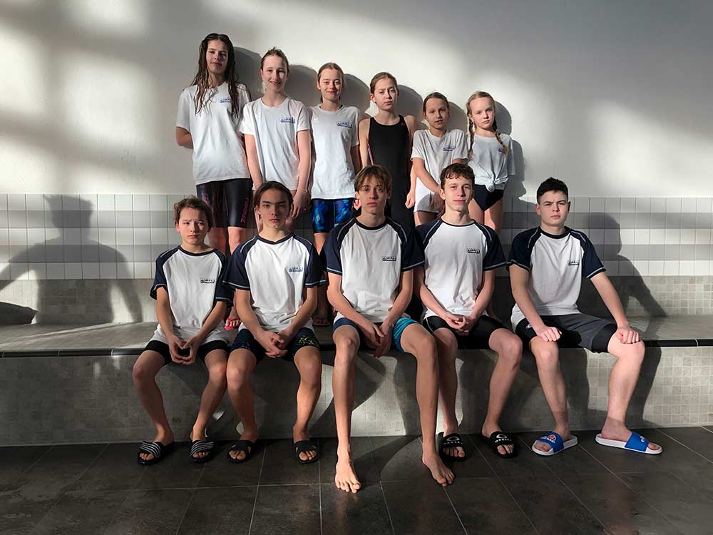 Das SC-Aqua-Nachwuchsteam (v.l.n.r.): Oben Frieda, Nike, Margit, Paula, Anna und Fanny. Unten Björn, Janis, Levin, Leander und Sven.